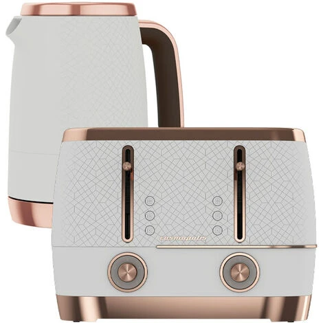 Part of the stylish Beko Cosmopolis breakfast range, this Beko Cosmopolis Kettle & Toaster Set in Off White & Rose Gold features the matching 1.7 litre kettle and 4 slice toaster.