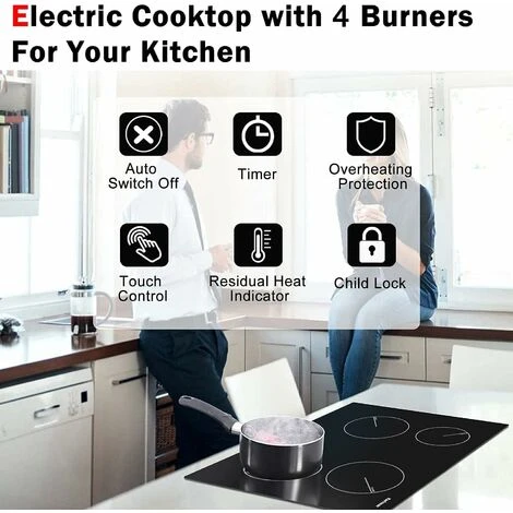 - ✔️ Black crystal glass electric cooktops surface is very easy to clean and maintain, with beautiful appearance and full functions.