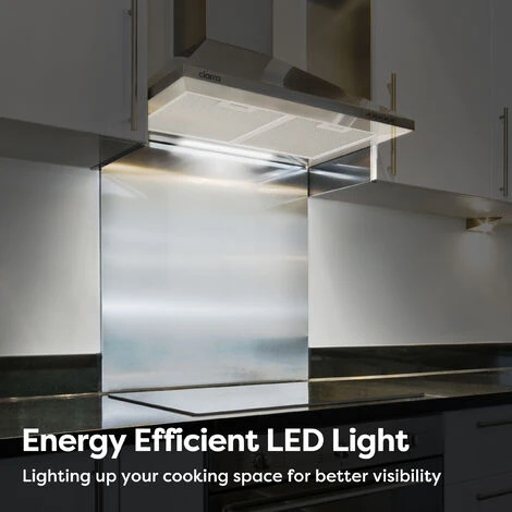 – It is a wall-mounted cooker hood with button control for 3 speeds, and an LED lamp inside.