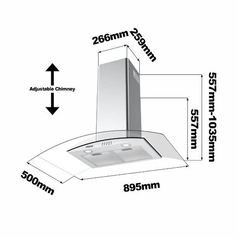 506SS90 90cm Glass Cooker Hood with High Extraction Rate