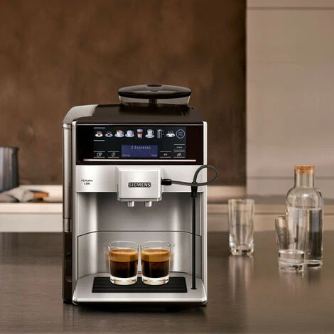 The bean-to-cup coffee machine Siemens “TE653M11RW” prepares all most popular coffee drinks just at your fingertips. The iAroma system ensures perfect taste. 2 users can save their own menu with their individual settings. Intuitive and simple operation, automatic maintenance programs make it easy to enjoy coffee every day.8 COFFEE DRINKS AT ONE TOUCH The coffee machine prepares espresso, black coffee, americano, espresso macchiato, flat white, cappuccino, latte macchiato and latte just at one touch.2 USER PROFILES 2 users can program and save their own individual settings for different recipes. AUTOMATIC AND EASY-TO-CLEAN MILK SYSTEMThe coffee machine has an extremely convenient milk system with an integrated milk tube that can be inserted directly into the milk package. The automatic milk system rinsing program autoMilk Clean effectively rinses the milk system after each beverage with milk. Convenient steel milk container is included. When not in use, it can be stored in refrigerator. INTUITIVE CONTROL Easily understandable touch icons and a text screen make it easy to operate the coffee machine.AROMADOUBLE SHOT FUNCTION Thanks to the “AromaDouble Shot” function, you can enjoy a cup of strong coffee without any bitterness. Your coffee will be prepared in two steps – double coffee grinding and double coffee preparation will provide the most optimal coffee flavour. This automatic process ensures no unpleasant bitterness in the drink. iAroma SYSTEM FOR YOUR PERFECT COFFEE iAroma system combines different elements making them work together, so that your coffee would have the most perfect aroma and taste. High performance, reliable ceramic grinder mildly grinds coffee beans to an even consistency preserving the best aroma and taste qualities. SensoFlow intelligent heater system ensures the optimal and equal beverage temperature. 19 bar pressure for the maximum coffee flavour extraction and density. High quality brewing unit is very quick and easy to clean. SIMPLE MAINTENANCE Integrated automatic maintenance programs allow you to simply enjoy your coffee.
