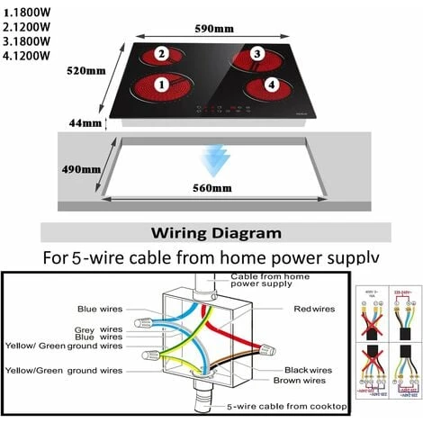 - 【6000W High Power Electric Hob 】Four zones Ceramic Hob from 1 to 4–1800W, 1200W, 1800W, and 1200W, with independent touch control panel, heat faster, more energy-efficient and low-noise.