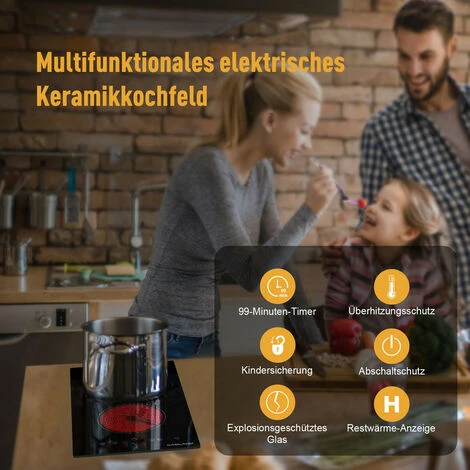 The surface of the ceramic hob is made of high-quality crystal glass that can be easily cleaned with a damp cloth.