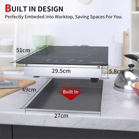- ??【Recessed design + easy to clean】: Built-in, design seamless, easy to clean; Take it outside, portable hob, it is convenient to bring it on your trip. Product dimensions L x D x H: 510 mm x 295 mm x 56 mm; Cut size: L 490 mm x D 270 mm.