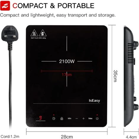 - 【9 Temperature Levels Available】You could quickly choose your desired power from 120 W to 2100 W, which meets your various cooking needs. Meanwhile, this induction plate hob with 2100 W high power, fast heating speed, shorten cooking time. Perfect for individuals, fits in the mobile homes and apartments.
