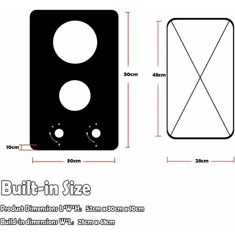 - ✔️ High Efficiency Burners — The gas cooktop equipped with 2 versatile burners: Rapid burner 3.0kW, Auxiliary burner 1.75kW, each burner distribute even heat to meet a variety of cooking demand. Such as simmer, braise, fry, stir-frying, roast, steaming, boil, melting or caramelizing.