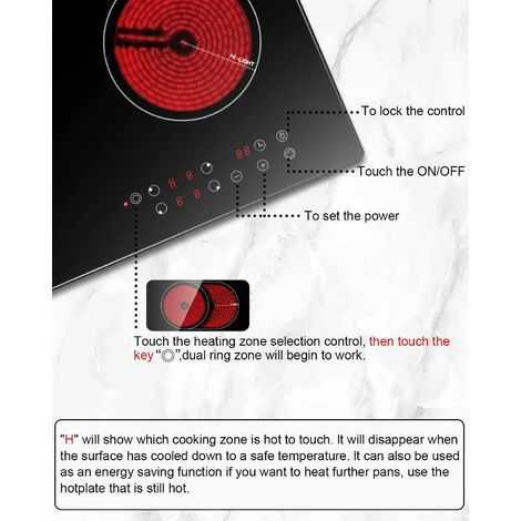 - MULTIPLE PROTECTIONS — High safety performance, our ceramic cooker has some great protection features to ensure safety for your whole family such as auto switch off, residual heat indicator, over heating protection, child lock function.