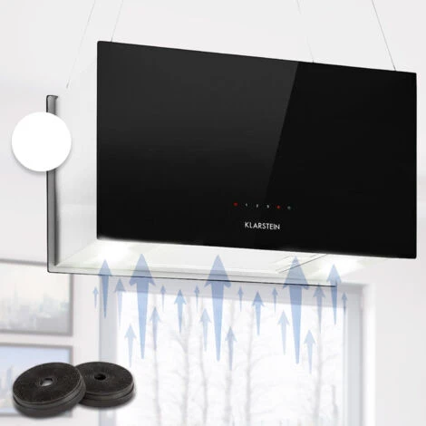 The outward appearance of the Klarstein Kronleuchter L island hood is stylish in Pure Ambience Design. The front and back are finished in luxurious black safety glass while the sides are finished in brushed stainless steel.