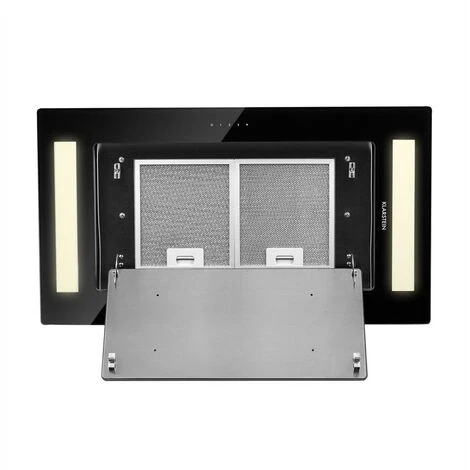 Discrete service, elegant design: the Klarstein Remy cooker extractor hood is not only beautiful, but also flexible! Either as a ceiling hood over a cooking island or as a built-in or substructure hood in a fitted kitchen, it can easily find a place over steaming pots in almost every kitchen. With 230 watts of engine power, it not only performs its work efficiently with up to 620 m³ / h exhaust air output, but also does its job with a lot of style. With a shiny black mirrored surface made of 1cm-thick safety glass, it absorbs kitchen fumes with invisible power and skilfully transports them outside. With three power levels, it can cope with any cooking odours and steam and can be easily controlled via touch display or conveniently by remote control.