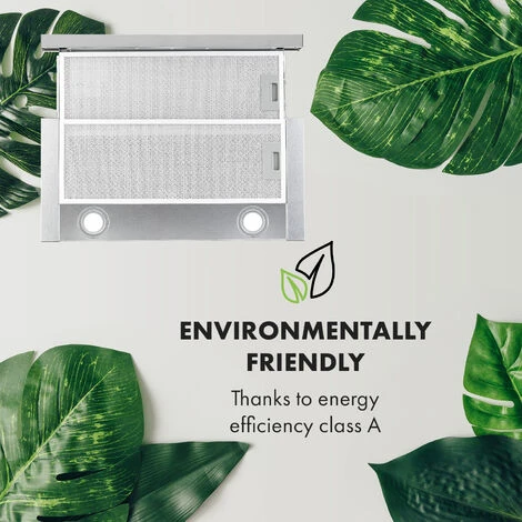 The Klarstein Viola extractor hood is powerful, space-saving and energy-efficient. Regardless of whether there is a rising smoke when searing meat or fish, hot steam when cooking soups or stews or food odours: the Klarstein Viola cooker hood makes short work of haze and vapours over the stove.