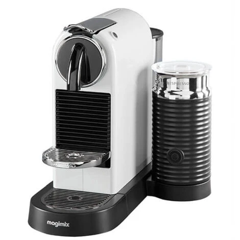 The updated retro-modern design of the white Nespresso CitiZ & Milk by Magimix will appeal to both Nespresso coffee drinkers and design lovers, adding a touch of elegance to your coffee ritual.