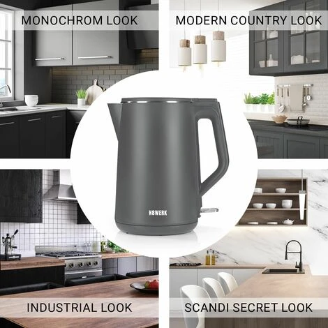 | The N8WERK kettle in the Nordic Grey Edition impresses both inside and out: modern and clear in the lines, pleasant to handle and with stainless steel at its core. It offers you wireless ease of use because it is connected to the base station can be removed and ensures rapid heating. The double-wall design (plastic on the outside with an elegant matt finish, stainless steel on the inside) enables safe handling, as the outer housing does not heat up. Other functions for your convenience: Boil-dry protection, overheating protection, concealed heating element for simple cleaning. On/off switch with LED light and base station with cable storage. Simple. Stylish. The N8WERK kettle in the Nordic Gray Edition. Technical data: 220-240V~50/60Hz, Max. 2200W. Cable length 0.75m. Dimensions: 23 x 16 x 25.5cm. |