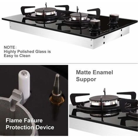 - ✅ Easy Installation & High-Efficient – This black glass gas hob is a plug and go unit that can be installed quickly and easily. Automatic ignition via rotating control, flexible and accurate gas adjustment. Making cooking high efficiency and energy-efficient.