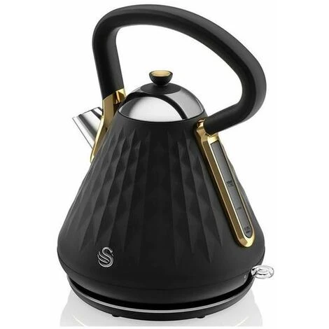 The Swan Gatsby 1.7L Pyramid Kettle is the perfect addition to any kitchen. Its chic and stylish design, coupled with its impressive functions, fast heat up, and generous capacity make making a cuppa almost as enjoyable as drinking it. The generous capacity means it can boil enough water for up to 8 cups of tea, coffee, or hot chocolate at once, perfect for busy households or unexpected guests. The powerful 3KW concealed heating element heats up water fast, so you can have a lovely hot drink in no time. The pull off lid and transparent water gauge on the side allow for easy and accurate filling. An indicator lamp shows when the kettle is boiling, and boil-dry protection ensures your safety. The cordless design and 360-degree rotational base offer maximum usability whether you’re left or right-handed and means you can return it to its base without hassle. The chic and sophisticated design, pyramid shape with matte black housing, diamond detailing and gold accents helps make a statement in any kitchen.